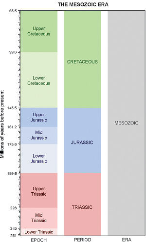 Most of the fossils are from the Mesozoic era (250–65 million years ago), which reflects the age of rocks preserved in the Antarctic Peninsula where they are from. This was the age of the dinosaurs, and an era which has greatly improved our understanding of the evolutionary changes, continental movements and climates leading up to today.